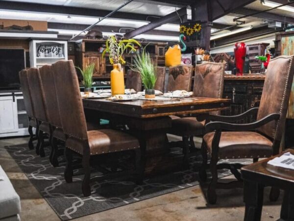 Mesquite desk 6 ft with live edge and turquoise in lay stone